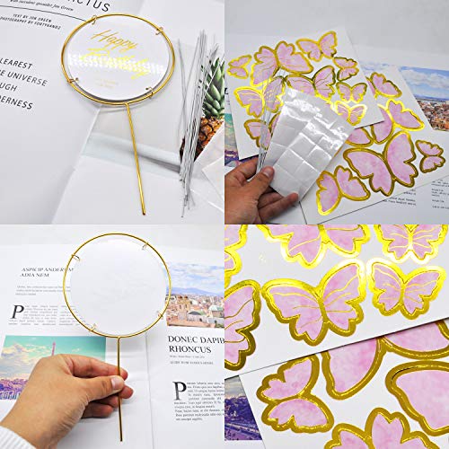 NC 21 topper per torta a forma di farfalla, decorazione da parete per compleanno, matrimonio, festa, decorazione da parete (rosa)