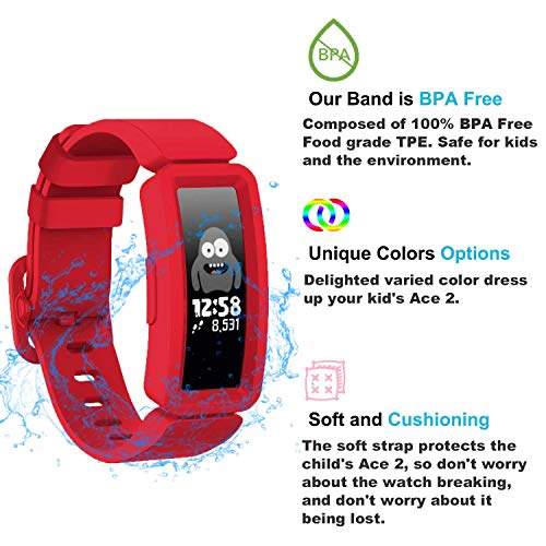 TopPerfekt - Cinturino Compatibile con Fitbit Ace 2 per Bambini 6, in Morbido Silicone, Impermeabile, per Ragazzi e Ragazze, Compatibile con Fitbit Ace 2 Cinturino (1-Rosso)