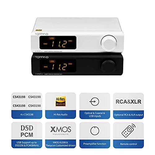 Topping D30 Pro HiFi DAC Preamplificatore bilanciato CS43198x4 Chip di decodifica Decodificatore USB / ottico / coassiale XMOS XU208 DAC audio a 32 bit / 384 kHz con telecomando (Nero)
