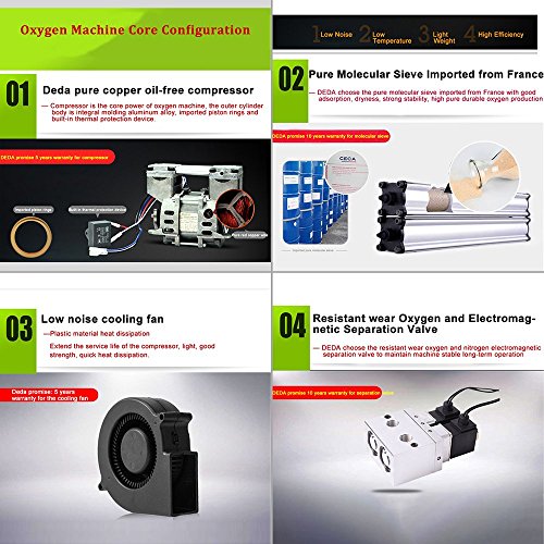 TOPQSC Generatore di ossigeno portatile con concentratore 1-6L / min 30-90% (± 3%) Ossigeno Home 90% Alta purezza per uso in auto da viaggio (220 V) (non alimentato da battaglione)