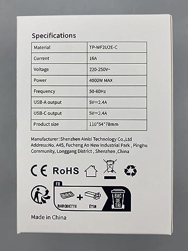 ⚡️【2 porte USB】Presa con porte USB-A e USB-C, ognuna dotata di un'uscita USB da 5V/2.4A, compatibile con una vasta gamma di dispositivi per maggiori esigenze di carica in un'unica posizione.
