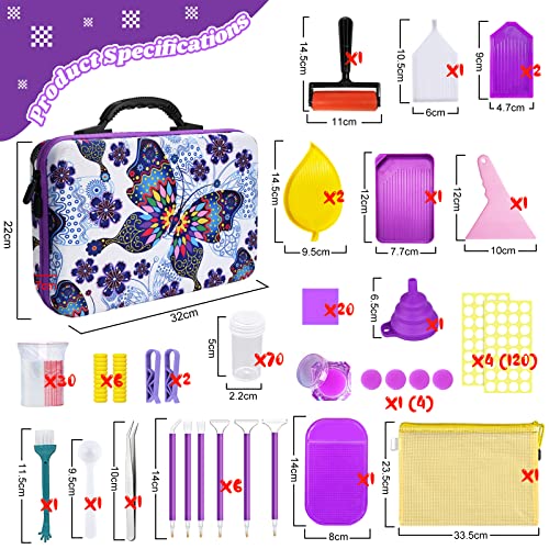 【Accessori per pittura diamantata】 include 1 custodia con 70 griglie, 20 sacchetti con chiusura lampo, 20 pezzi di argilla per colla, 6 penne per attrezzi, 1 strumento per pittura con diamanti, 6 stick di colla, 1 penna per trapano, 2 cuscinetti antiscivolo, 6 piccoli vassoi diamantati, 1 imbuto, 2 * clip, 1x cucchiaio, 1x etichetta adesiva, 1x rullo per pittura diamantata, 2x pinzette, 1x custodia con cerniera È sufficiente per le forniture di pittura diamantata e la tua pittura diamantata.