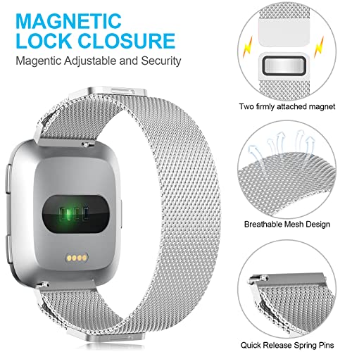 ✅【Materiale di alta qualità】: Il cinturino fitbit versa 2 è realizzato in acciaio inossidabile intrecciato a rete di alta qualità, con un effetto lucidante fine. Design unico con doppia serratura magnetica. La chiusura magnetica facilita l'installazione e la rimozione manuale dell'orologio senza bisogno di attrezzi!