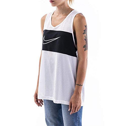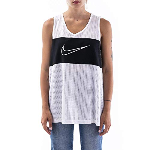 NIKE W NSW Mesh Tank Top/Singlet Donna, Donna, Tank Top/Singlet, CJ4045, Bianco/Nero/Bianco, L