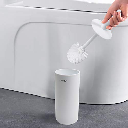 Elegante spazzolone per WC chiuso: superficie in plastica bianca, adatto per stili diversi, che non arrugginisce e senza striature. Semplice da pulire.