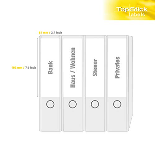 TopStick 8722 Etichette per raccoglitori A4 (192 x 61 mm, 1000 fogli, carta, opache) autoadesive, stampabili, adesivi permanenti per dorsi di cartelle, 4000 etichette multiuso, bianche