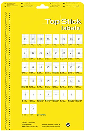 Fornitura: 100 x TopStick etichette, formato A4, 10,5 x 14,8 cm, rettangolari, bianche (25 fogli da 4 etichette ciascuno)