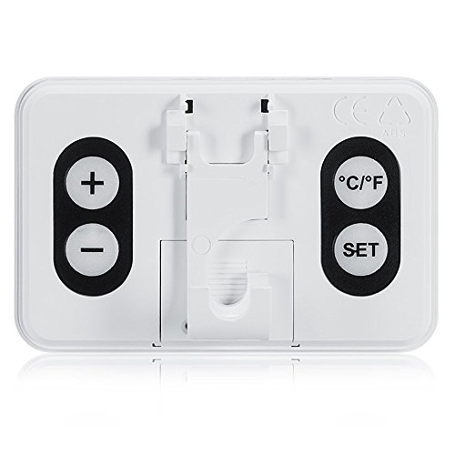 Molto semplice da usare: cute termometro digitale con 4 pulsanti, ma solo solo una chiave per impostare la temperatura di allarme che si desidera. Premere il tasto SET per impostare l'intervallo di allarme, quindi premere il tasto + o - per confermare il valore desiderato. In stato di origine, impostazione predefinita di allarme ad alta temperatura 28 ℃, impostazione predefinita di allarme temperatura minima è 18 ℃
