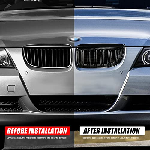 TOPTHAN Griglia per radiatore E90 adatta per BMW E90 E91 2005 2006 2007 2008 lucido anteriore doppia nervatura grill lucido reni doppio ponte nero