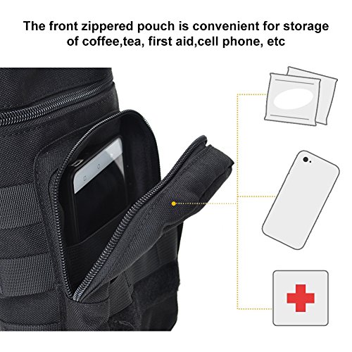 Dimensioni della sacca della bottiglia d'acqua Circa: 9 "x 4" x 4 ", scomparto secondario Dimensioni Circa: 6" x 3,5 "x 1,5" .1000D Tessuto Oxford criptato con effetto idrorepellente e la patch della bandiera americana è realizzata con fili ricamati al 100% e fatto in Cina.
