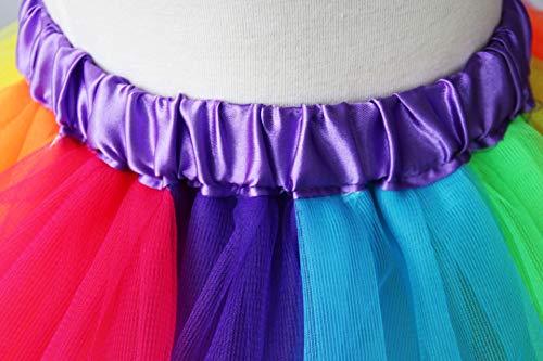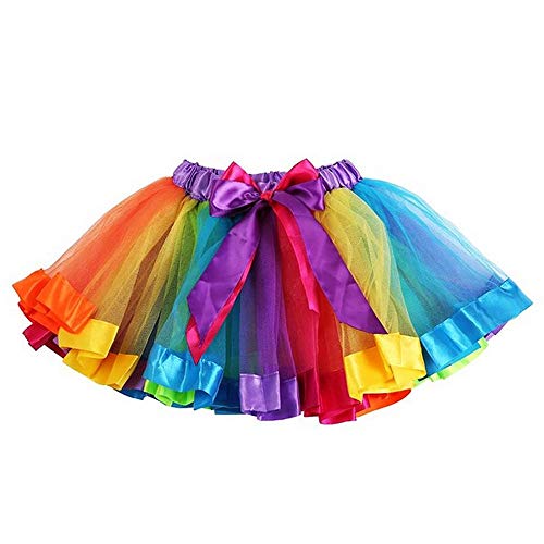 TopTie - Tutù da ragazza, gonna da ballo/danza con vari volant multistrato nei colori dell'arcobaleno