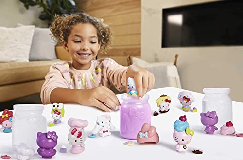 Confezionato come una sorpresa, ogni "barattolo di latte" include 1 figura Hello Kitty, 1 accessorio per cappello rimovibile, 1 accessorio per dessert e 1 foglio da collezione.