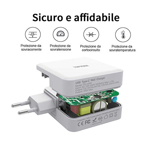 TOPVORK USB C 45W Caricabatterie da Muro, Power Delivery 3.0, Compatibile con iPhone, iPad PRO, MacBook e Altro Ancora