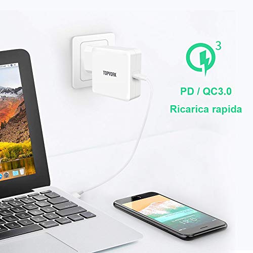 TOPVORK USB C 65W Caricabatterie da Muro, Power Delivery 3.0, Compatibile con iPad PRO, MacBook e Altro Ancora