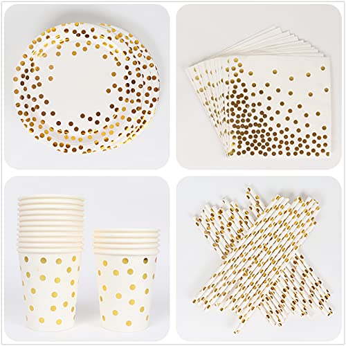 Bel design: tovaglia: colore bianco con motivo a coriandoli a pois dorati, forniture per la tavola di carta: progettato in whitestyle con pois oro a pois, elegante e piacevole da abbinare bene alla tua decorazione e per stupire i tuoi ospiti, rendendo la tua festa memorabile e impressionante