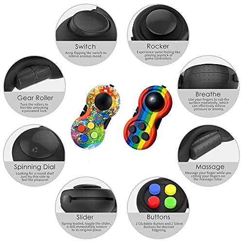 Topways Fidget Pad con 8 funzioni, Fidget Controller Ridget Stress Reducer, Fidget Toy Cube allevia lo stress e l'ansia, giocattoli per ADD ADHD autismo bambini e adulti (Graffiti + arcobaleno)