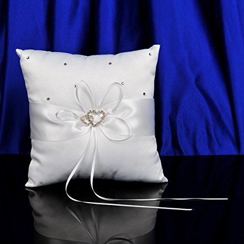 Topwedding, set composto da cestino e cuscino per fedi in raso avorio e 2 cuori in strass