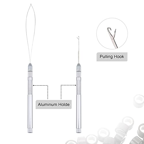 TopWigy Set di Strumenti di Estensione dei Capelli, Kit di extension per capelli, 1000 micro anelli in silicone, 4 aghi di ventilazione con 1 supporto in alluminio