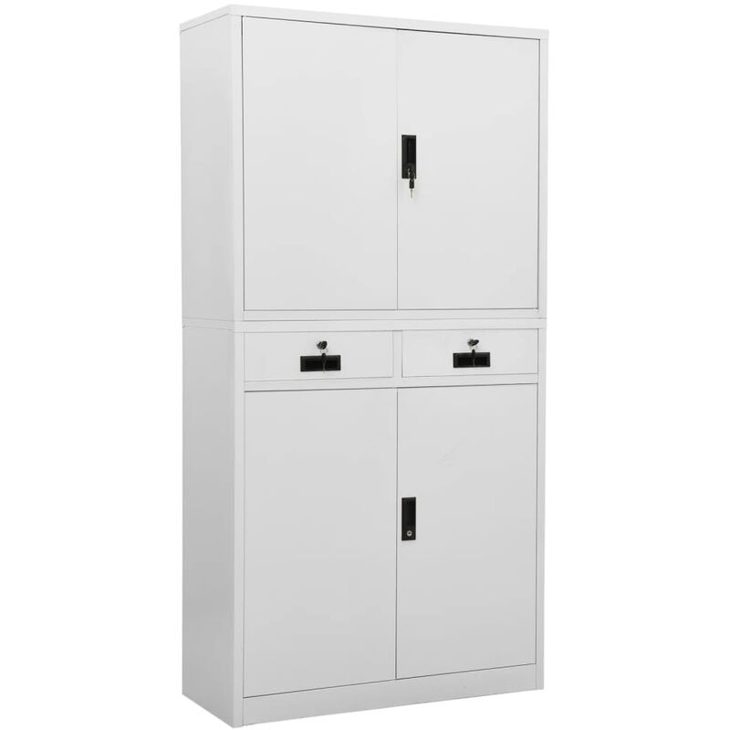Questo armadio per ufficio, grazie al tipico design a schedario, è ideale per la conservazione dei fascicoli. Questo mobile da ufficio è realizzato in acciaio, che lo rende resistente e facile da pulire. Con 3 ripiani regolabili, questo schedario vi consente di mettere ordinatamente i vostri file in diverse categorie e di tenerli al sicuro. I cassetti con guide su cuscinetti a sfera a 3 sezioni garantiscono un'apertura e una chiusura fluide, anche in condizioni di carico elevato. Questo mobiletto si adatta a qualsiasi arredamento d'ufficio grazie al suo design iconico. Colore: Grigio chiaro Materiale: Acciaio Dimensioni: 90 x 40 x 180 cm (L x P x A) Con 3 ripiani regolabili Con serrature 2 cassetti con guide a sfera a 3 sezioni Peso massimo supportato per ripiano: 30 kg Capacità di carico per ciascun cassetto: 25 kg Capacità di carico totale: 90 kg Assemblaggio richiesto: Sì ATTENZIONE: Per evitare il ribaltamento questo prodotto deve essere utilizzato con il dispositivo di fissaggio