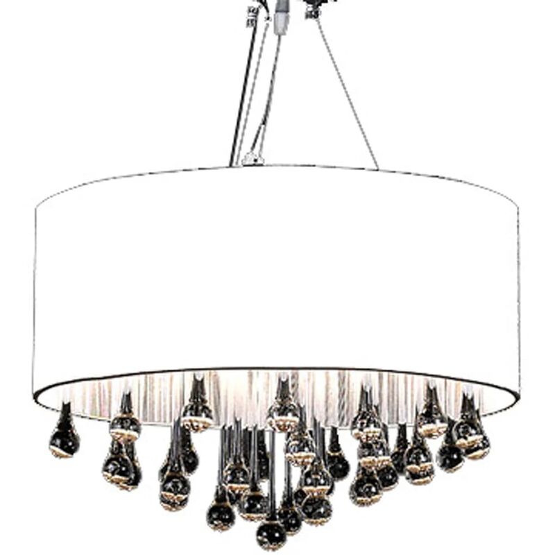 Questo splendido lampadario con 85 diversi cristalli e 3 lampade è interamente realizzato in metallo e veri cristalli di vetro (senza parti in plastica e pietre economiche) che vi offre un'eleganza unica. Il lampadario ha un alloggiamento in metallo cromato, ed è è ricoperto da un paralume bianco traslucido in filato. Il ciondolo alla moda ha un design in cristallo reale. Il vetro incolore di alta qualità offre una vera chiarezza e brilla di luce intensa (anche da altre fonti di luce), nello spettro ci sarà un magnifico gioco di colori. Questo magnifico lampadario incanta con le sue 3 sorgenti luminose e i suoi prismi lucidi che vi regalano un magico scintillio di luce piacevole e calda. Un vero colpo d'occhio in qualsiasi ambiente e ideale per scopi privati e industriali. Numero di cristalli: 85 Colore: Cristallo / Bianco/ Cromo Materiale: Metallo/vetro Altezza totale: 50 cm Diametro totale: 45 cm Lampadine: non incluse (3 x E14)