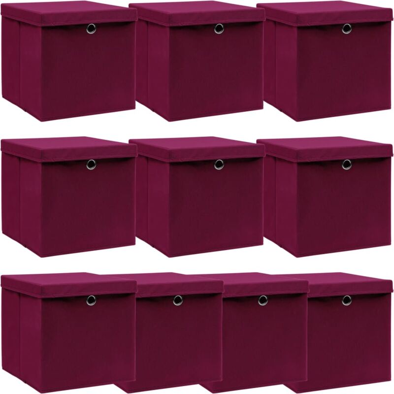 Queste scatole portaoggetti pieghevoli si adattano perfettamente alla vostra casa e offrono un ampio spazio per riporre sciarpe, calzini, biancheria intima, e così via. I pratici contenitori portaoggetti sono realizzati in tessuto non tessuto che li rende piuttosto resistenti. Ogni contenitore è dotato di un coperchio per mantenere puliti gli articoli conservati. Ciascuna scatola portaoggetti è inoltre dotata di un comodo occhiello in metallo che può essere utilizzato per estrarla dall'armadio, dallo scaffale, dal mobile, ecc. Quando non sono in uso, le scatole portaoggetti possono essere ripiegate per risparmiare spazio. Colore:Rosso Scuro Materiale: Tessuto non tessuto (100% poliestere) Dimensioni: 32 x 32 x 32 cm (L x L x A) Pieghevole Coperture incluse La consegna include: 10 Scatole portaoggetti