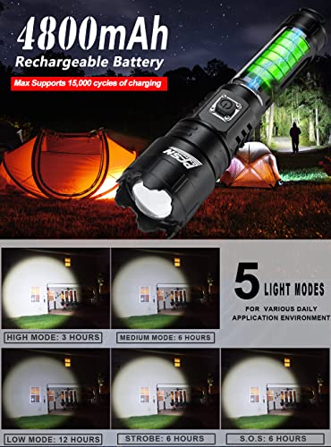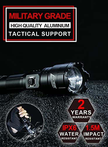 5 modalità di illuminazione e funzione zoomabile: la torcia elettrica TCP-3000 è dotata di 5 modalità di luce, forte, media/bassa, stroboscopica e SOS, potenti torce con funzione zoom, proietta un modello di fascio che fornisce un punto generoso e un ampio fascio di inondazione, questa potente torcia è la migliore per gli sport all'aria aperta, come campeggio, escursionismo, caccia, speleologia, passeggiate con il cane, è anche uno strumento essenziale per auto, camion, casa e ufficio.
