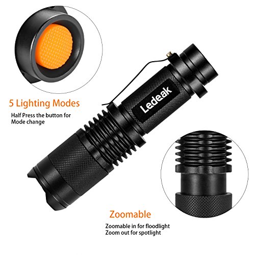 Torcia elettrica eccellente LED, lampada LED Ledeak Cree XM-L2 LED 800 Lumens Zoomable tattica IPX6 impermeabile torcia elettrica di 5 modi per uso domestico Camping Escursionismo Emergenza Ciclismo