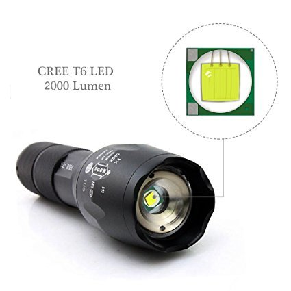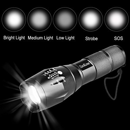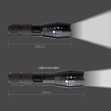Torcia Elettrica, ZeoKone Flashlight-Torcia LED T6 1000 Lumen, Messa a Fuoco Regolabile, 5 Modalità di Illuminazione, Batterie non Incluse