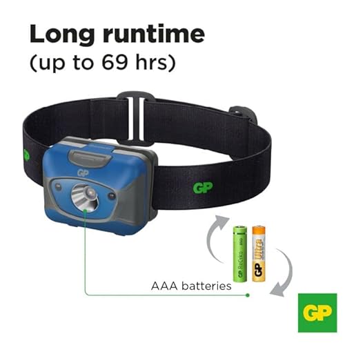 Torcia Frontale LED CH45 | GP Discovery | Lampada frontale da 200 Lumen - Lampada da Testa con Luce Frontale, Inclinazione Regolabile, Modalità Flash e Led Rosso, Colore Blu