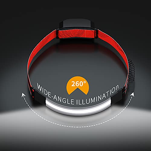 【Torcia frontale COB super luminosa】 Questa luminosa lampada frontale COB offre un'illuminazione grandangolare di 260 ° con 40 sfere della lampada COB PCS, 2000 lumen in uscita per la massima luminosità che illumina tutto con un incredibile campo visivo.