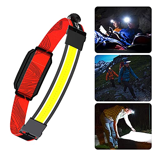 Torcia frontale COB, 2000 lumen Lampada frontale LED super luminosa Ricaricabile basso profilo 260 ° Fascio largo Faro Impermeabile 3 modalità Fari con batteria incorporata per campeggio, pesca