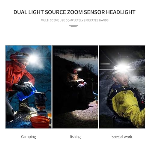 Torcia frontale LED ricaricabile,20000 lumen Proiettori a fascio largo super luminoso a 6 modalità, faretto impermeabile Torcia frontale faro a luce rossa per campeggio, ciclismo, caccia, elmetto