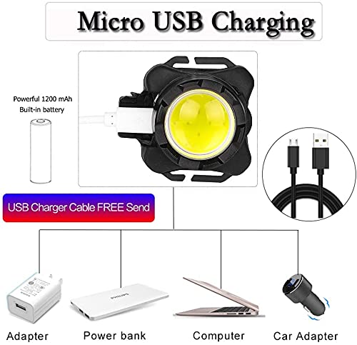 【Lampada frontale COB super luminosa】 Questa mini torcia frontale COB adotta una lampadina LED COB 1x per fornire un'elevata luminosità del lumen. La massima luminosità è fino a 60000 lumen, faro a led a mani libere per illuminare il tuo ambiente.