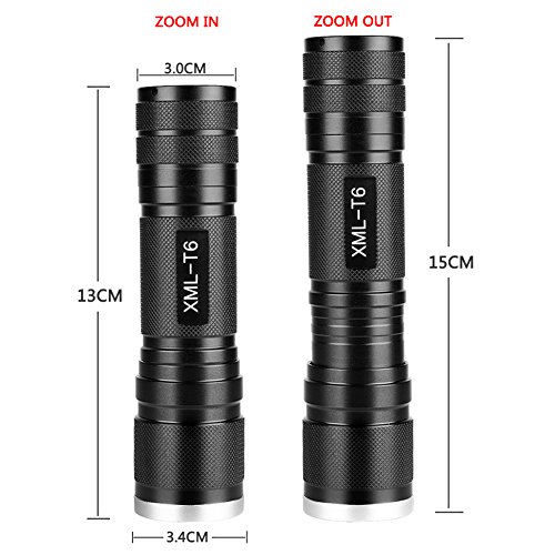 FORTE E AFFIDABILE: design antiscivolo, resistente agli urti e resistente all'acqua per uso giornaliero. 5 modalità: alto, medio, basso, stroboscopio e SOS + Zoom in & OUT