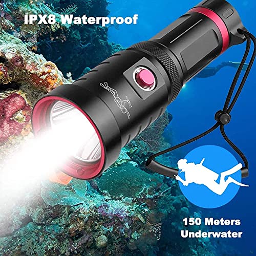 Torcia da immersione, luci subacquee a LED XHP70 da 10000 lumen super luminose 150 metri sott'acqua, impermeabile IPX8, torcia professionale per immersioni subacquee con cordino per immersioni
