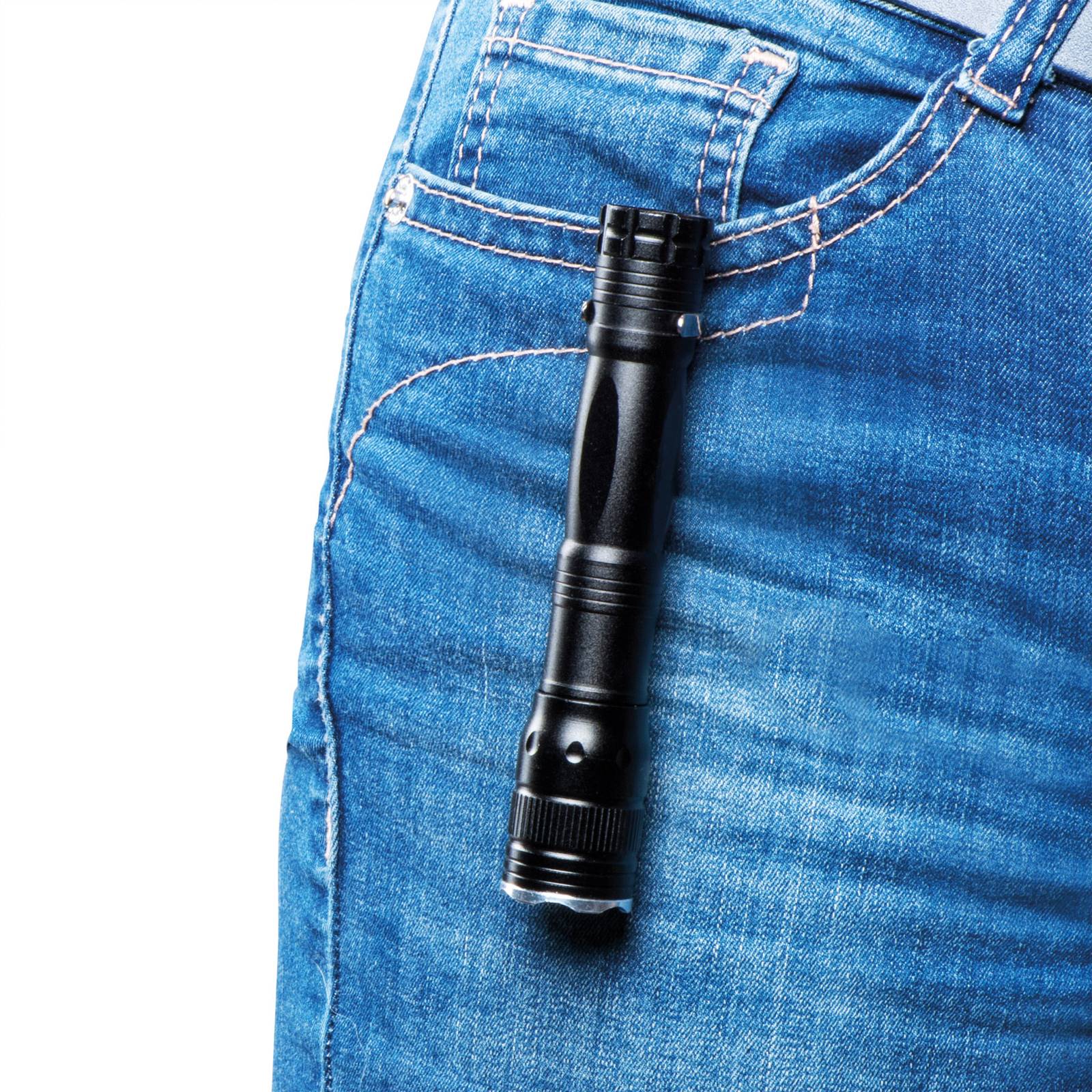 Piccola torcia a LED MAULluna con clip di fissaggio per taschino o appunti Sottile, leggera e compatta: la pratica clip di fissaggio della torcia a LED MAULluna ne facilita il fissaggio a portata di mano. Sui pantaloni da lavoro, nelle tasche della giacca o alla cintura. La torcia occupa pochissimo spazio, è leggera e può quindi essere portata facilmente in giro. La moderna torcia a LED offre una gamma di luce fino a 10 metri e può essere utilizzata ininterrottamente per un'intera giornata lavorativa. - Include una clip di fissaggio in metallo per il taschino o la cartellina, rimovibile - Compatta: si adatta alle tasche dei pantaloni o della giacca e al vano portaoggetti - Adatta per l'uso all'aperto: è adatta per l'uso all'aperto, resistente agli spruzzi d'acqua (IPX4) - Include 1 batteria da 1,5 V (tipo AA) da 2300 mAh - Variabile: cono di luce regolabile (funzione Zoom) per una luce diffusa da vicino o una luce concentrata a lunga distanza - Per uso hobbistico e privato, per le emergenze