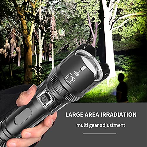Torcia LED Alta Potenza Ricaricabile, Super Luminos 9000 Lumen Tattico Torcia LED, Regolabile Focus e 3 Modalità di Illuminazione (con 18650 Batteria Ricaricabile & Cavo di Ricarica USB)