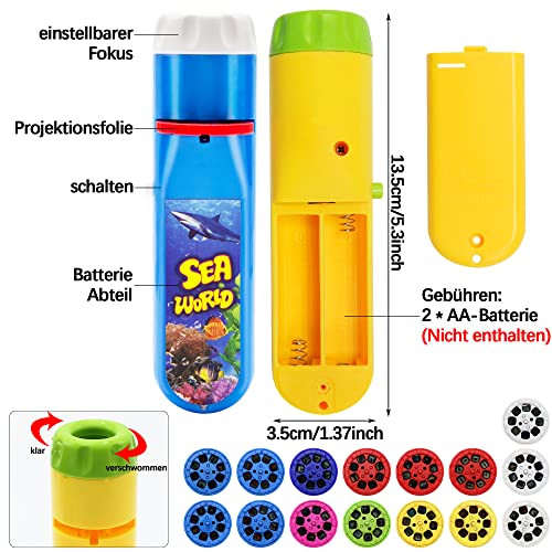 Materiali sicuri e di alta qualità: questa torcia tascabile per proiettori diaframma per bambini realizzata in plastica di alta qualità, ecologica e atossica, ottima fattura, bordo liscio non graffierà la mano dei bambini. La luce di proiezione giocattolo misura 13,5 x 3,5 cm. Alimentato da 2 batterie AA (batterie non incluse). La torcia tascabile per proiettore può essere utilizzata non solo come proiezione, ma anche come torcia per interni ed esterni.