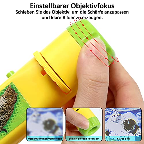5 set a tema e 120 immagini: questa divertente torcia tascabile proiettore ha molti temi e immagini diversi. Include 2 torce, 120 immagini diverse e 5 gruppi di tema. Regola liberamente la messa a fuoco del proiettore alla chiarezza del modello e migliora la sensazione di esperienza di scena. Il proiettore tascabile 2 in 1 può essere proiettato su pareti o soffitti al buio, lasciate che il vostro bambino si immerga nella magica percezione del mondo degli animali