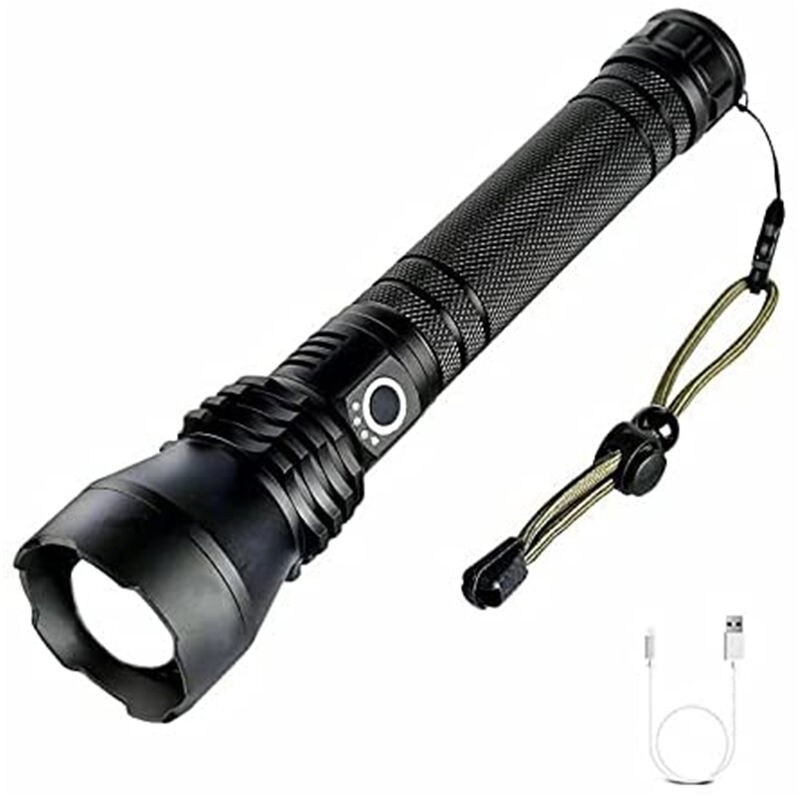 Questa torcia d'emergenza portatile utilizza 1 lampadina cree led P70, producendo un fascio ad alta luminosità. Dotata di 3 funzioni luminose: luce intensa, luce soffusa e luce intermittenza per SOS. E' inoltre dotata di una manopola (grigia) che regola l'ampiezza del fascio luminoso. Si alimenta con 2 x batterie 18650 (entrambe incluse nella confezione) che ne garantiscono una lunga durata. Batterie ricaricabili direttamente dalla torcia collegandola alla presa di corrente elettrica domestica mediante il cavo in dotazione da collegare ad un alimentatore (spinetta degli smartphone) usb 5V 1A. Ideale per gli amanti del campeggio o pesca notturna e caccia sportiva. E' perfetta anche per casi di emergenza in auto o black-out improvvisi. Inoltre, il pulsante di accensione è ben visibile sul corpo della torcia e, al di sopra di esso, è presente un cursore che indica lo stato delle batterie 25% - 50% - 75% - 100%. La ghiera girevole permette di aumentare o diminuire il diametro del fascio