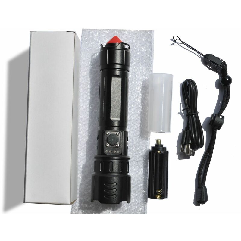 led è luminoso fino a 15.000 lumen. Questa torcia ricaricabile ha una funzione di zoom dove puoi puoi regolare la messa a fuoco allungando la potente torcia per ottenere un raggio nitido. lungo raggio e un ampio raggio di luce. La luce di prossimità può illuminare una casa di 180 metri quadrati e la luce a lungo raggio può illuminare fino a 100 piedi quadrati. 500 metri. 【Torcia USB ricaricabile】 Questa potente torcia a LED ricaricabile dura fino a 500 metri. 12 ore di luminosità media grazie a;