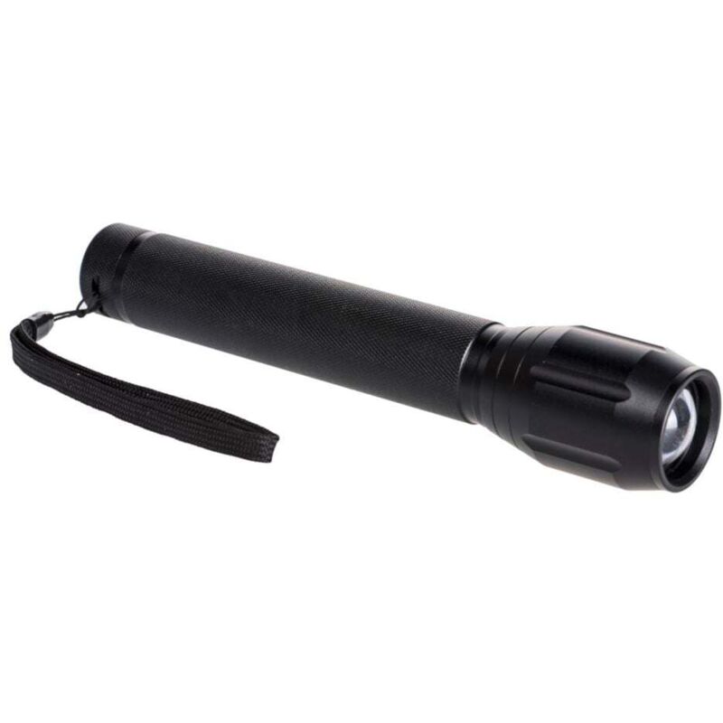 Torcia portatile altamente efficiente e multifune con zoom. La resistente struttura in alluminio offre un'eccellente resistenza agli urti e la finitura ruvida garantisce una presa affidabile. Cinturino da polso incluso. Distanza del raggio 500 m Durata 6 ore Batterie incluse D x 3 Funzione alto - medio - basso - sos - flash Resistente ad acqua ed impatti Polsino con strap per una maggiore sicurezza Blister che aiuta la presentazione per le vendite al dettaglio Certificato CE