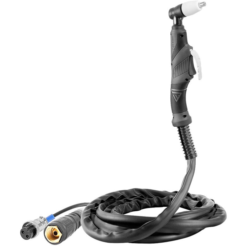 STAHLWERK Torcia per taglio al plasma PT-31 Caratteristiche Si adatta comodamente alla mano e consente un taglio prolungato e senza fatica. Tubo professionale con impugnatura della torcia di forma ergonomica e maneggevolezza ottimale in tutte le posizioni. Guaina robusta e di alta qualità con connettore a 2 poli. Guaina robusta Pacchetto tubi altamente flessibile Torce di alta qualità e durata Manipolazione ottimale in tutte le posizioni Guscio dell'impugnatura della torcia di forma ergonomica La PT-31 è adatta ai seguenti dispositivi STAHLWERK per il taglio al plasma CUT 40: * Nota: la nostra torcia al plasma è adatta anche per i tagliatori al plasma PT-31 compatibili di altri produttori fino a 40 A. ! Prestare attenzione al tipo di connessione del dispositivo! Dati tecnici Lunghezza del tubo flessibile: 5 metri. Aspirazione d'aria: 80 l/min. Spessore massimo di taglio: fino a 10 mm. Contatto di commutazione: Tuchel a 2 poli. Caricabile fino a 40 ampere. Connessione: Dado di raccordo