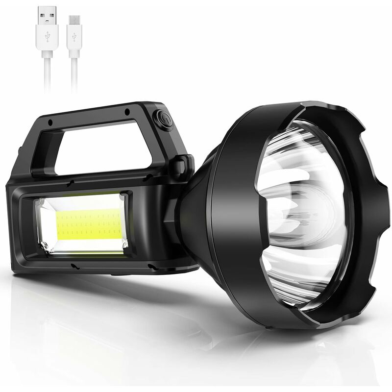 Torcia ricaricabile: la nostra lanterna da campeggio portatile incorpora una batteria al litio di grande capacità. L'orario di lavoro è molto lungo e viene aggiunta la funzione di visualizzazione della potenza, in modo da poter vedere la potenza a colpo d'occhio senza dover indovinare la potenza rimanente della torcia. Con una porta di uscita USB. È anche come un power bank, che può caricare il tuo dispositivo in modo rapido e semplice. 6 modalità di illuminazione: torcia super luminosa con 6 modalità di luminosità: forte, debole, SOS, avviso rosso, strobo. La luce laterale multifunzionale consente di utilizzarla come luce da campeggio e spia luminosa in caso di nebbia e foschia. La torcia a LED super luminosa utilizza il portalampada aggiornato per fornire una luce super brillante e la distanza del raggio è di oltre 600 metri, che è più lontana e più luminosa. . Robusto e durevole: la luce da campeggio a LED è realizzata con materiali tecnici ABS di alta qualità, resistenti e