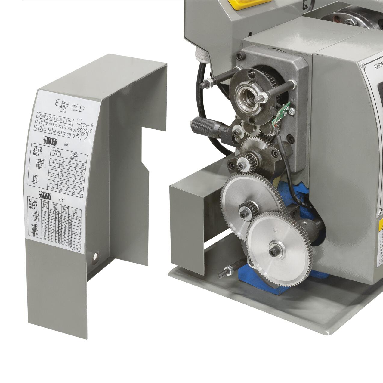 La macchina è in grado di eseguire diverse lavorazioni: tornitura cilindrica e conica, sfacciatura, profilatura, foratura e alesatura, filettatura, taglio o troncatura (da barra). la macchina è completamente a funzionamento manuale ed è costituita dalle seguenti parti: bancale portante, testa e mandrino, quadro elettrico e di mando, cassa ingranaggi della velocità e degli avanzamenti, carrello e slitte porta utensili, contropunta, protezioni del carrello e del mandrino.. il tornio è una macchina utensile, ad asse orizzontale, per la lavorazione di materiali metallici mediante asportazione di truciolo a freddo. la macchina è in grado di eseguire diverse lavorazioni: tornitura cilindrica e conica, sfacciatura, profilatura, foratura e alesatura, filettatura, taglio o troncatura (da barra).. con avanzamenti automatici longitudinale e velocità' variabile visualizzata sul display digitale. Altezza punte 105 mm Diametro max sul banco 210 mm Diametro max sul carro 140 mm Distanza tra le punte 400 mm Passaggio barra 21 mm Conicità passaggio barra CM 3 Filettature metriche (9) 0,5 ÷ 2,5 mm Velocità variabile del mandrino 50 ÷ 1100 rpm | 100 ÷ 2500 rpm Conicità contropunta CM 2 Motore 230 V 50 Hz 0,6 kW Dimensioni 760 x 320 x 350 h mm Peso netto 49 kg. Accessori inclusi: Mandrino autocentrante 3+3 Ø 100 mm, Lunetta mobile, Lunetta fissa, Contropunta fissa CM2, Comparatore per filettare, Protezione torretta, Protezione mandrino, Paraspruzzi posteriore, Torretta fissa per utensili da 10 mm, Carrello contropunta a bloccaggio rapido