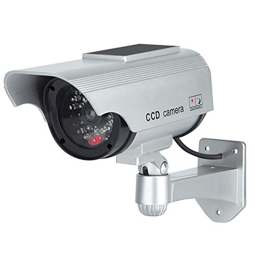 TOROTON Telecamere Fittizie di Sorveglianza da Esterno/Interno Energia Solare Videocamera Antifurto con LED Lampeggiante CCTV d'Imitazione, 1 Pezzi Argento