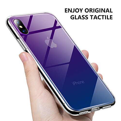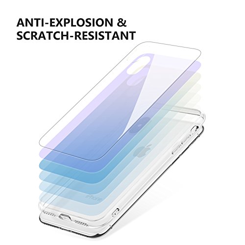 [iPhone x custodia in vetro temperato trasparente]: questo iPhone x Cover è realizzata in vetro temperato 9H per un look elegante e sensazione eccellente. La cover posteriore può resistere graffi.In vetro temperato trasparente preservare l' originale bellezza del tuo iPhone x