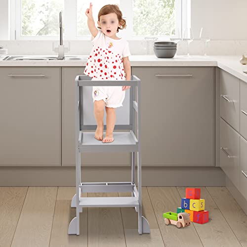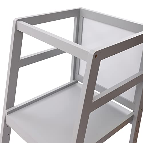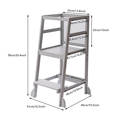 Torre di apprendimento per bambini, regolabile in altezza, con lavagna e ringhiere, in legno, per bambini, da 1 anno, colore: grigio