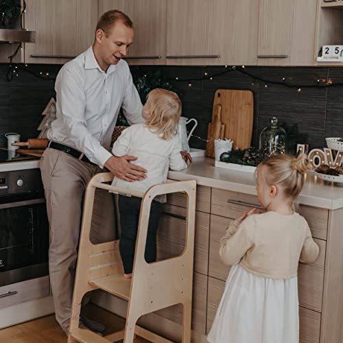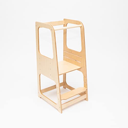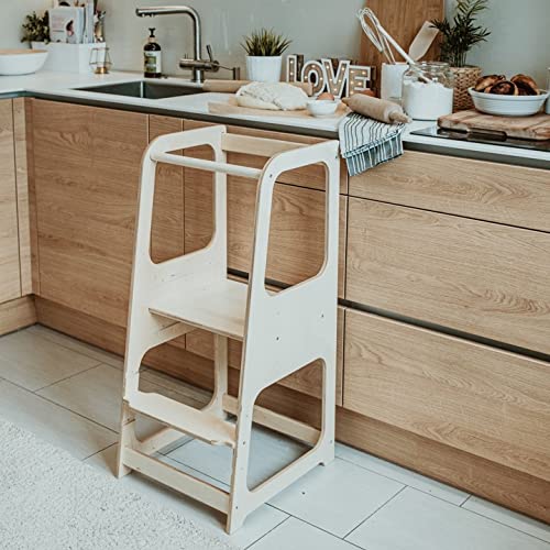 Torre di apprendimento - Torre Montessoriana in Compensato di Betulla per Bambini - Scaletta a 3 Livelli per Piano Cucina, Tavolo, Lavandino - Capacità 50kg