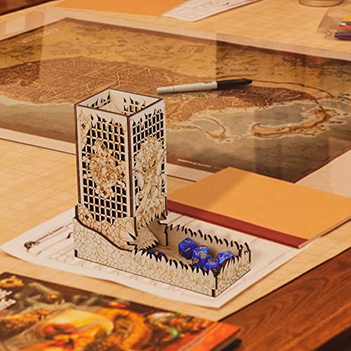 CZYY Torre di dadi con vassoio in legno inciso al laser Mind Flayer portatile e pieghevole per dadi Roller perfetto per giochi da tavolo e giochi di ruolo da tavolo (Cthulhu)